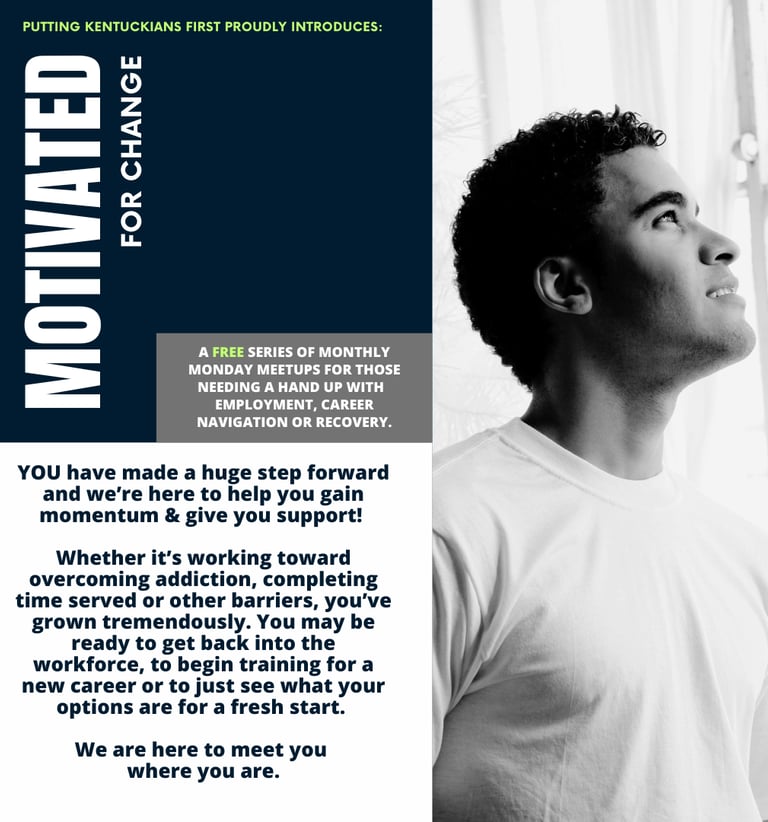 In addition, in partnership with Lake Cumberland Workforce Development Board and Kentucky Adult Education, we have created the program "Putting Kentuckians First." Putting Kentuckians First (PKF)'s mission is to create opportunities for all Kentuckians to receive targeted wrap-around services to accelerate the removal of barriers to successful employment. PKF's vision is to empower State, Regional and Local partnerships in creating a workforce triage system to eliminate barriers for Kentuckians to reenter the workforce.
